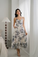 Adeline V Neck Dress (Black Cream Floral)
