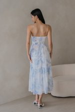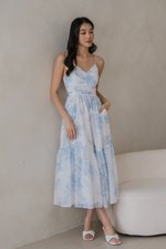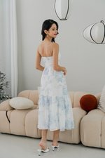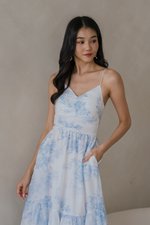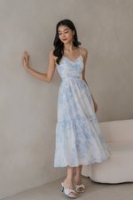 Adeline V Neck Dress (Ice Blue White Floral)