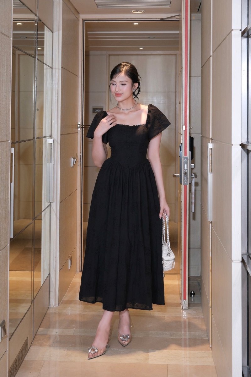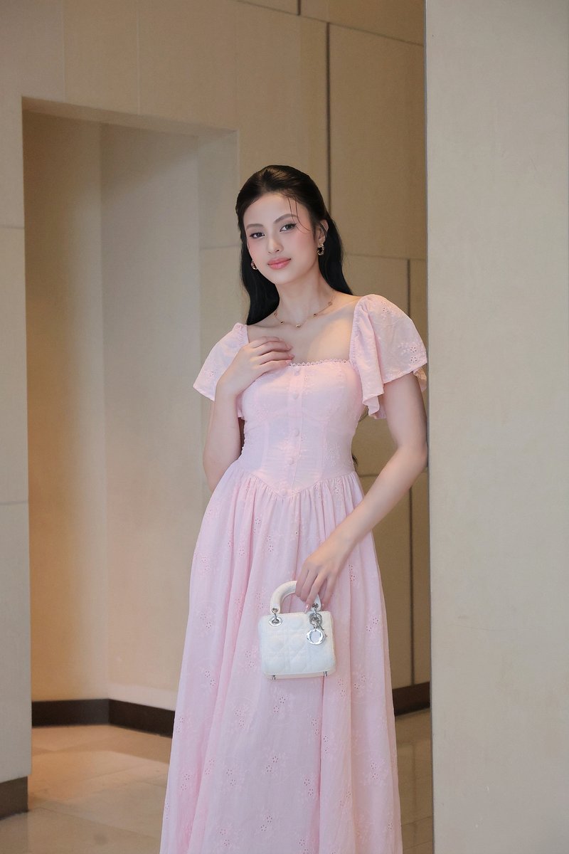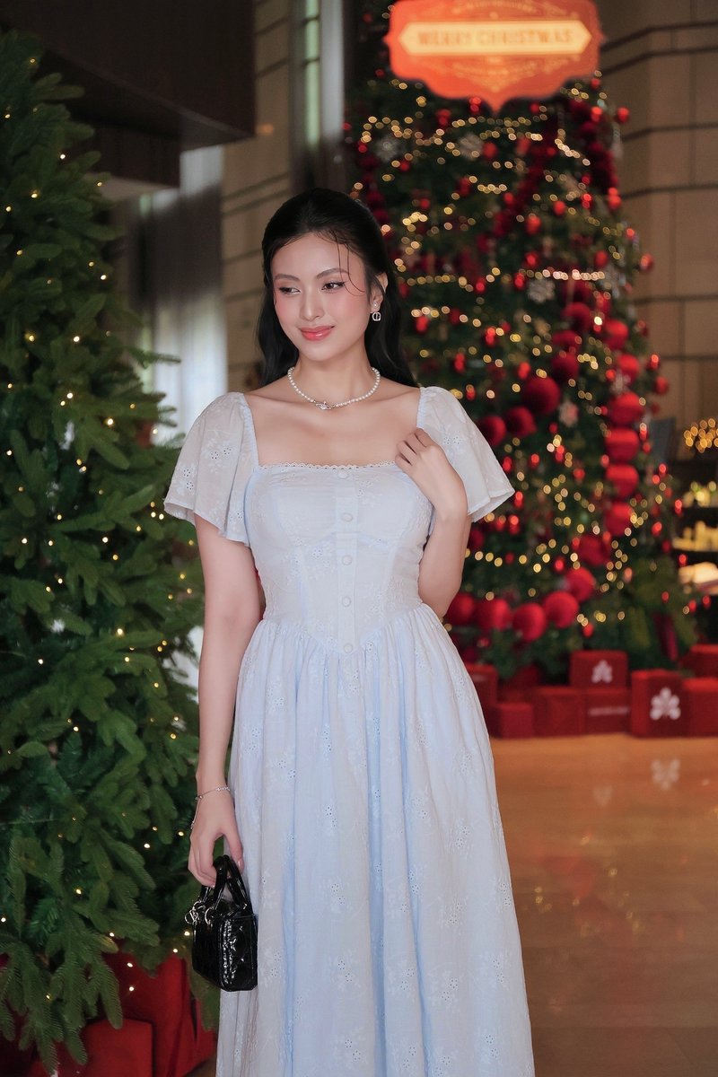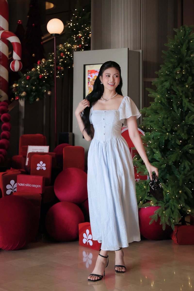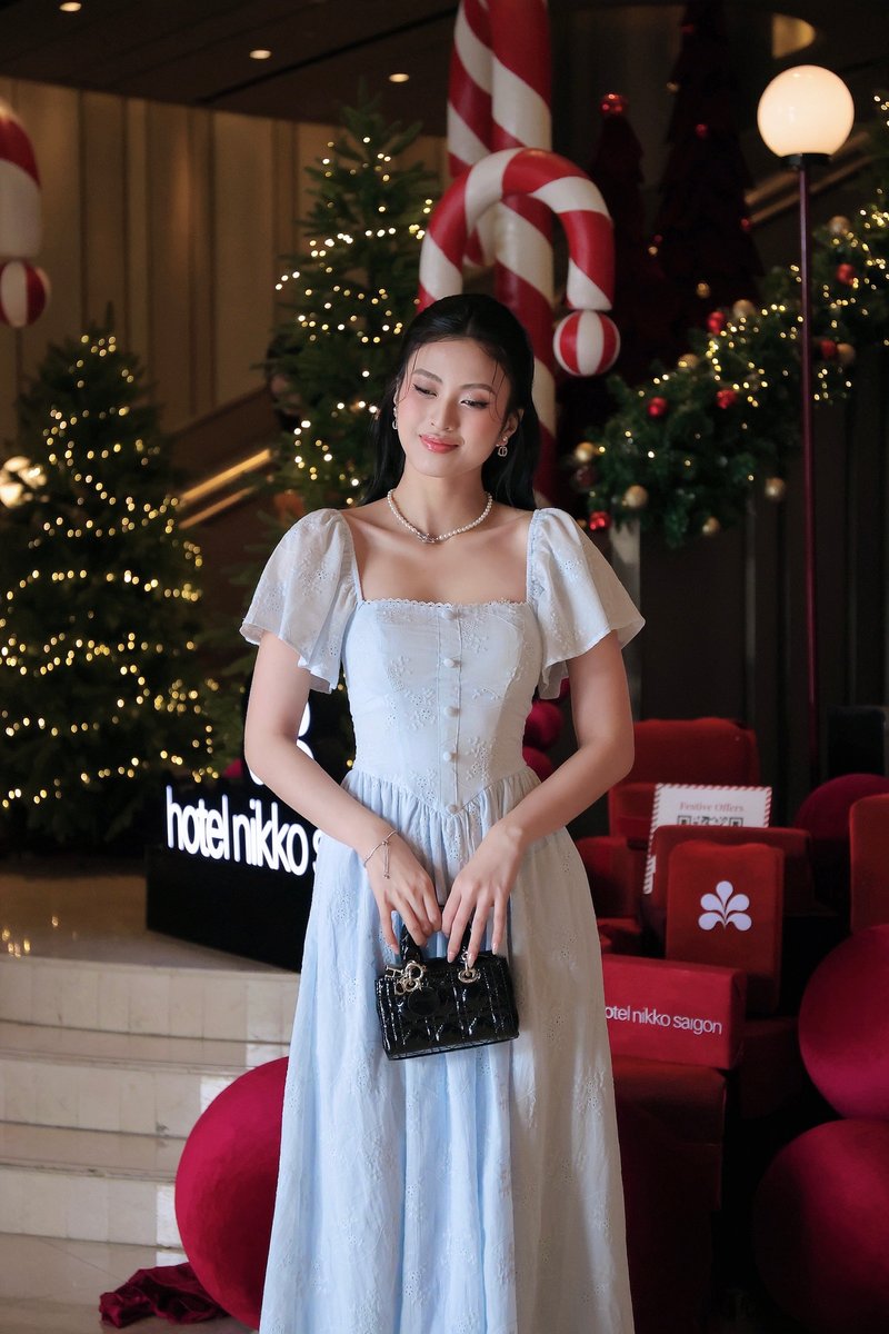 Model Ngoc stands 170 cm tall, wears size XS