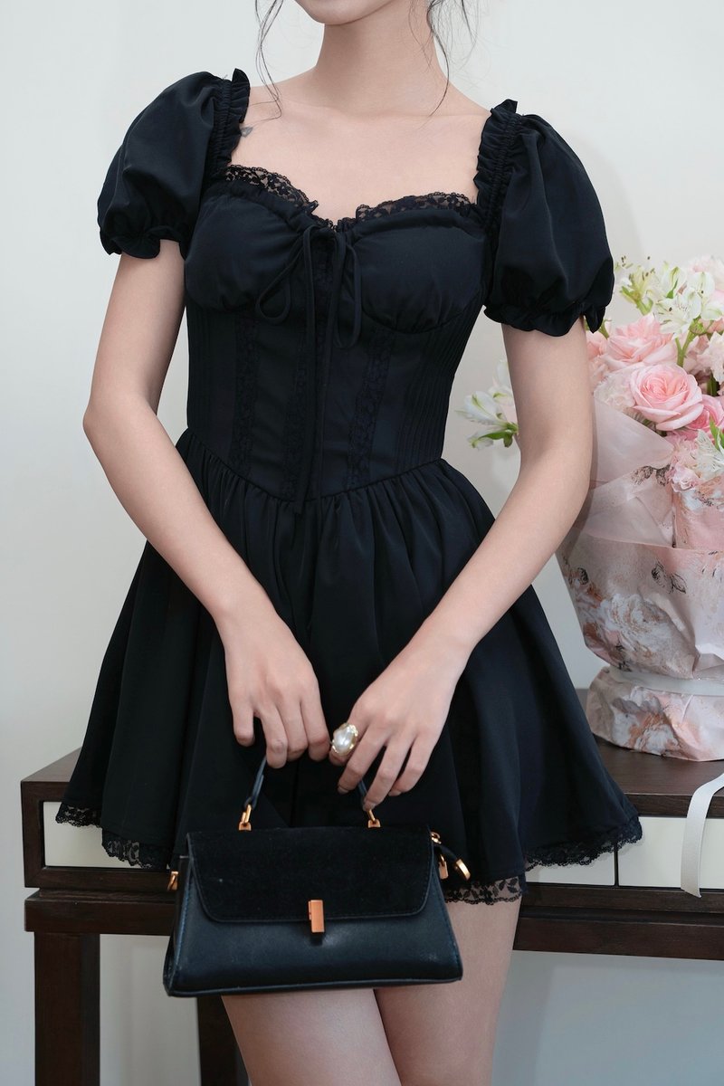 Aiko Padded Sleeved Lace Dress