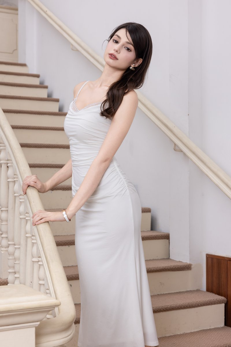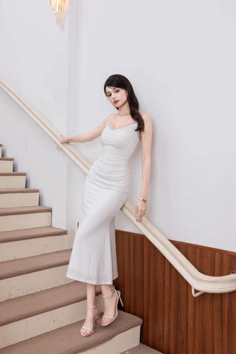 Model Dasha stands at 170cm tall, Uk4 wears size XS