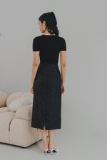Aletta Overlap Pearl Chain Knit Top (Black)