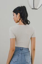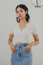 Aletta Overlap Pearl Chain Knit Top (Nougat)
