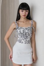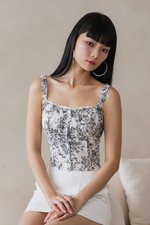 Allyssa Smocked Strap Padded Top (Black Floral)