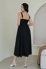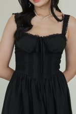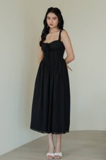 Amaris Padded Bustier Lace Midi Dress (Black)