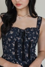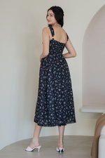 Amaris Padded Bustier Lace Midi Dress (Black Linen Floral)
