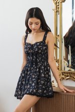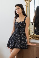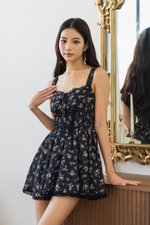 Amelie Padded Bustier Lace Romper Dress (Black Floral)