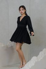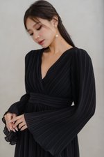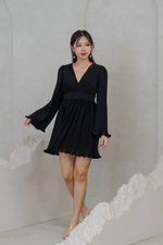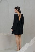 Anastasia Open Back Pleat Dress (Black)