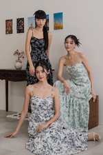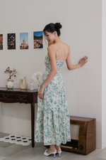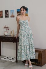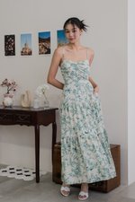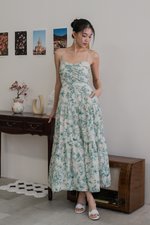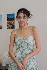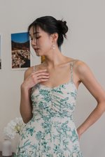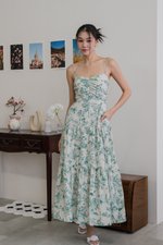 Auralia Padded Maxi Dress (Green Cream Floral)