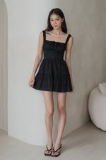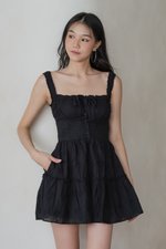 Avelina Crotchet Padded Romper Dress (Black)