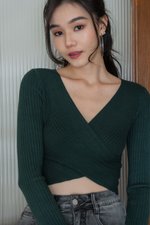 Avri Wrap Knit Top (Forest Green)