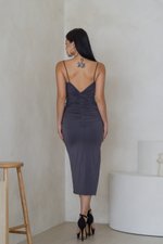Basic Cara Twist Back Ruch Dress (Gunmetal)