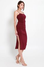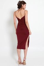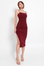 Basic Cara Twist Back Ruch Dress (Wine)