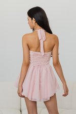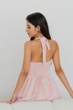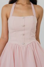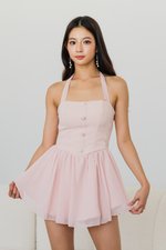 Belle Pearl Button Halter Padded Romper Dress (Pink)