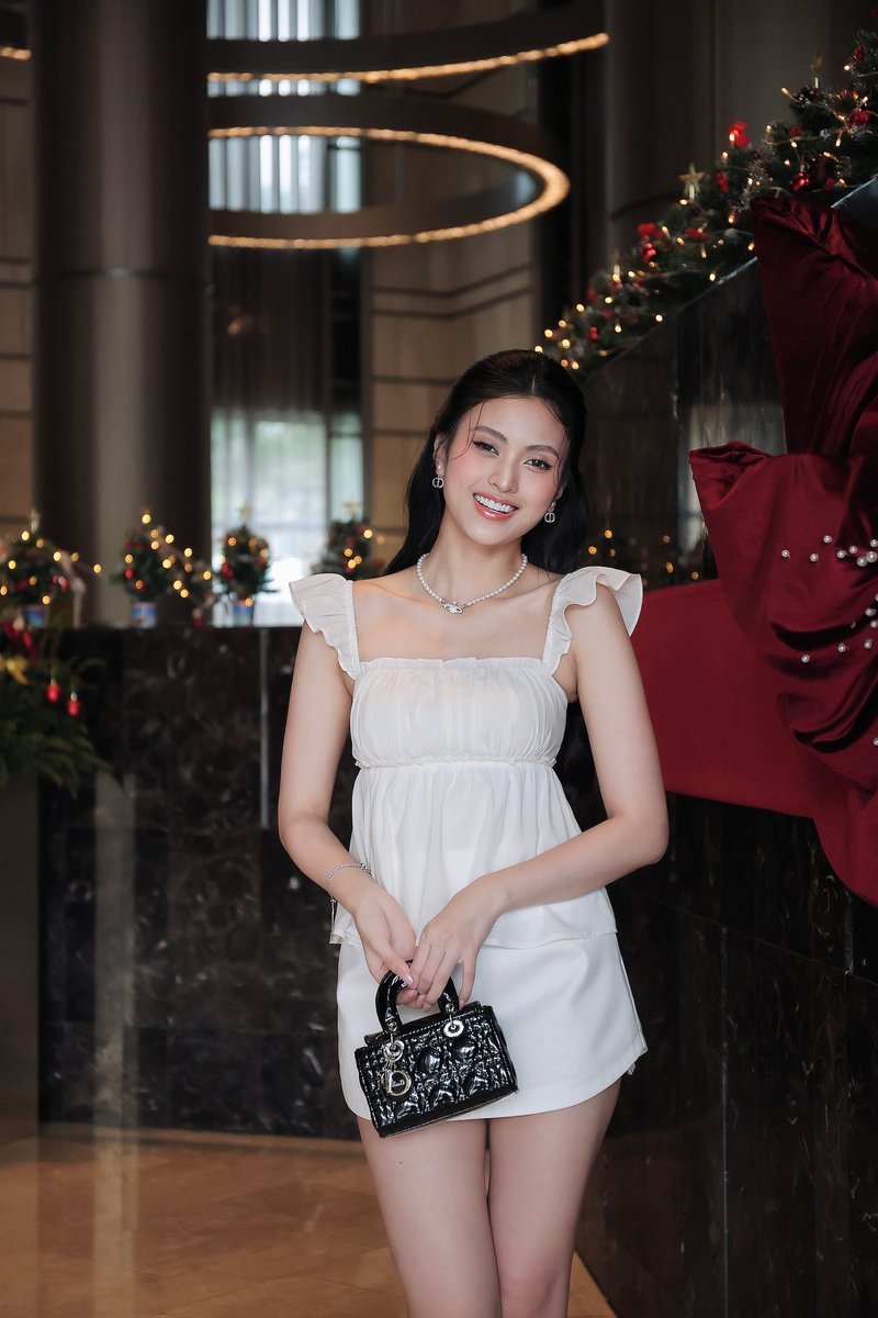 Model Ngoc stands 170 cm tall, wears size XS