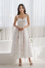 Brooklyn Bustier Lace Padded Midi Dress (Dusty Pink)