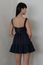 Cael Lace Back Bubble Padded Romper Dress (Navy)