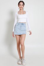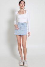Celine Curve Hem Denim Skorts (Light Wash)