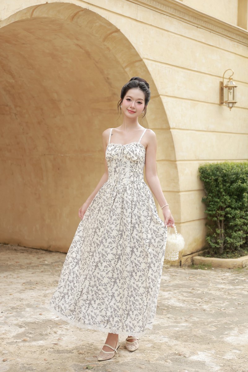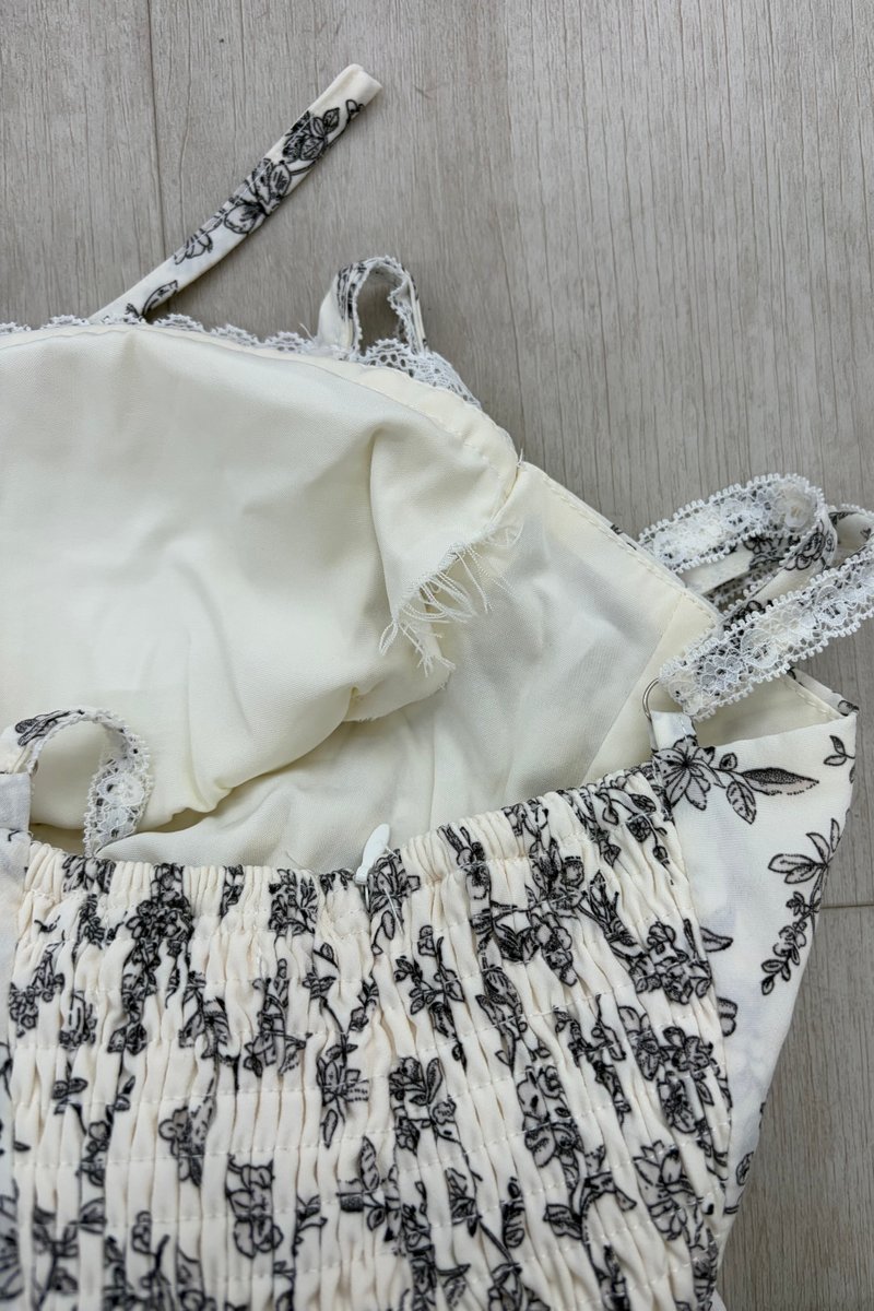 [DEFECT] Angelina Padded Bustier Lace Maxi Dress (Cream Black Floral, XXS)