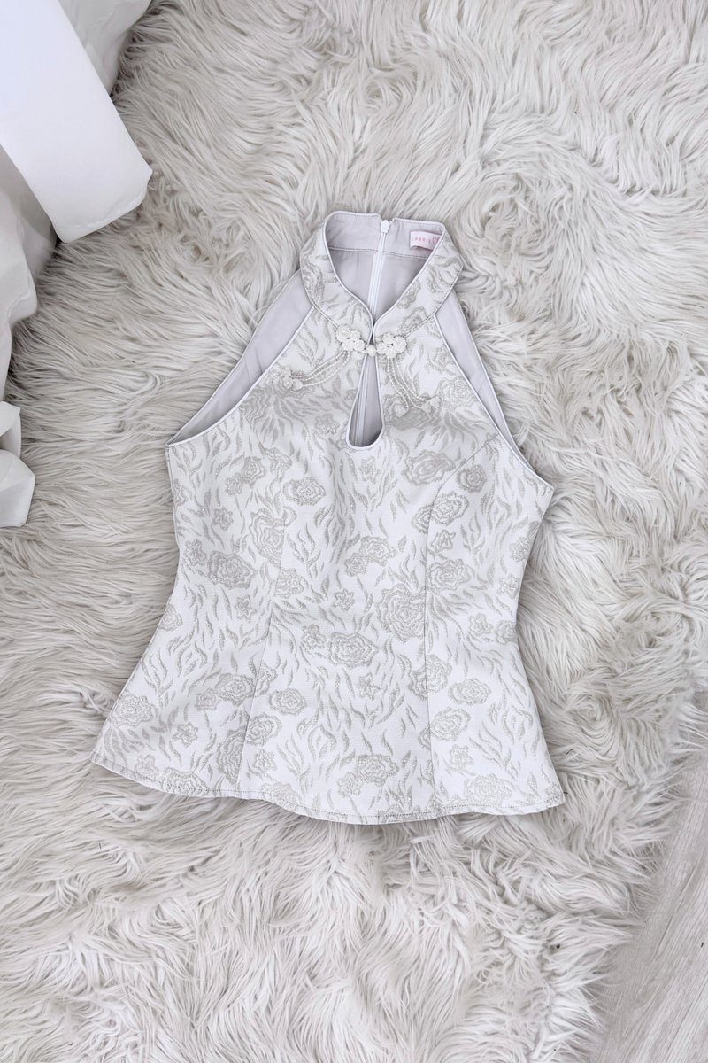 [DEFECT] Huan Embossed Peplum Padded Top (Silver Mist)
