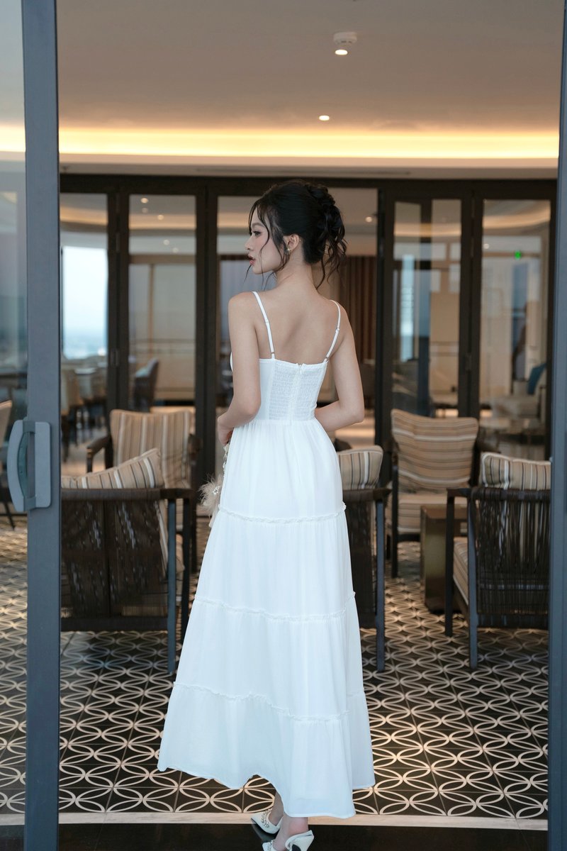 [DEFECT] Kiaira Padded Maxi Dress (White, XS)