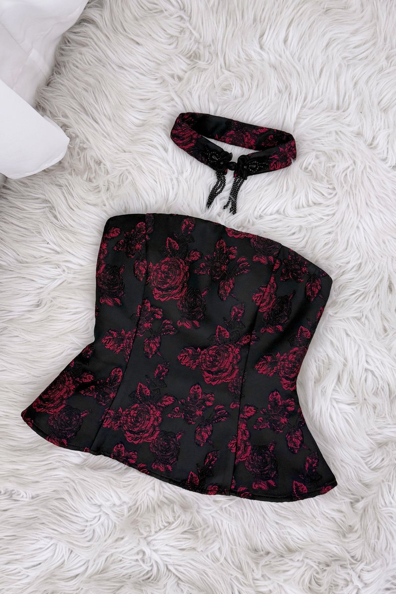 [DEFECT] Long Oriental Jacquard Padded Top (Ruby Rose, M)