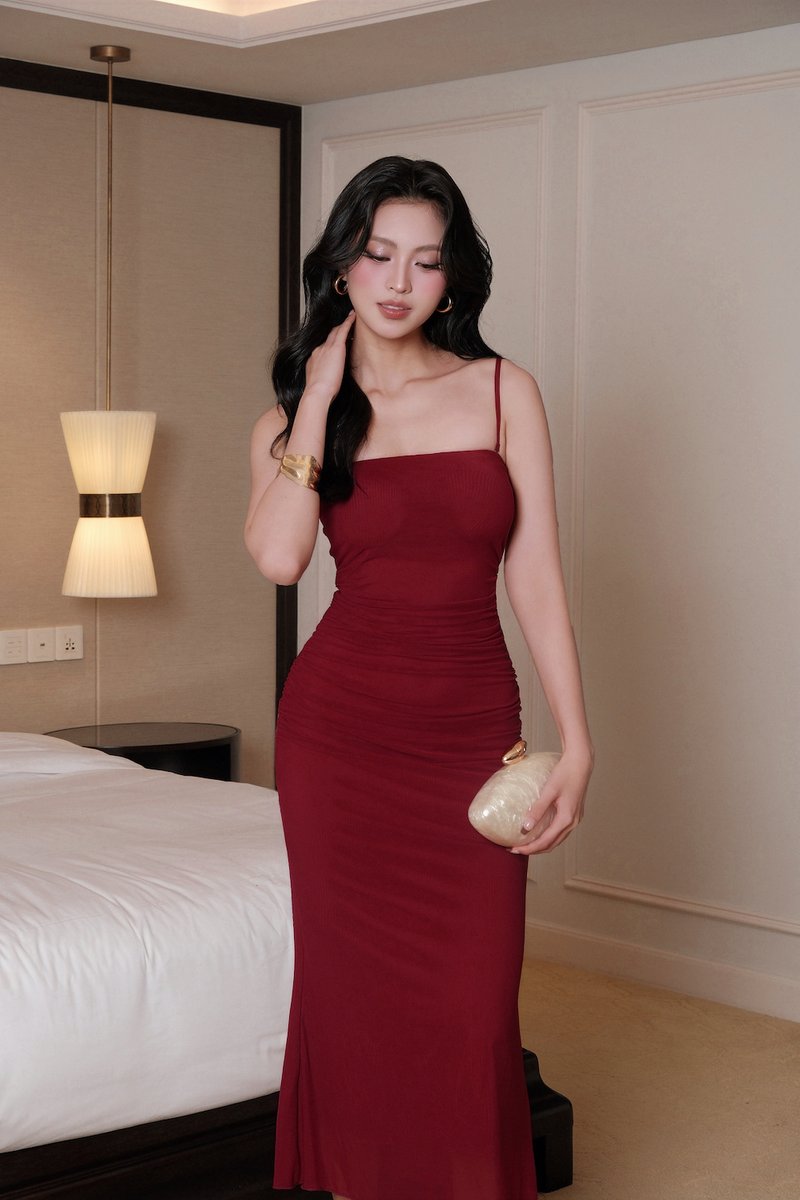 [DEFECT] Seraphie Straight Cut Mesh Padded Dress (Maroon, S)