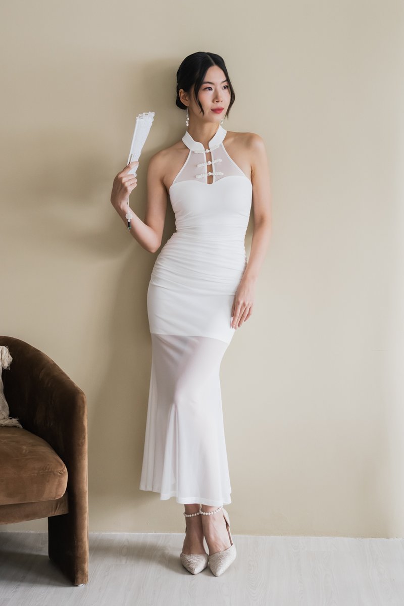 [DEFECT] Tang Mesh Padded Maxi Qipao (White, M)