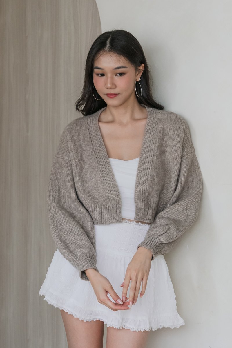 [DEFECT] Whitney Puffy Cardigan (Oatmeal Brown, S/M)