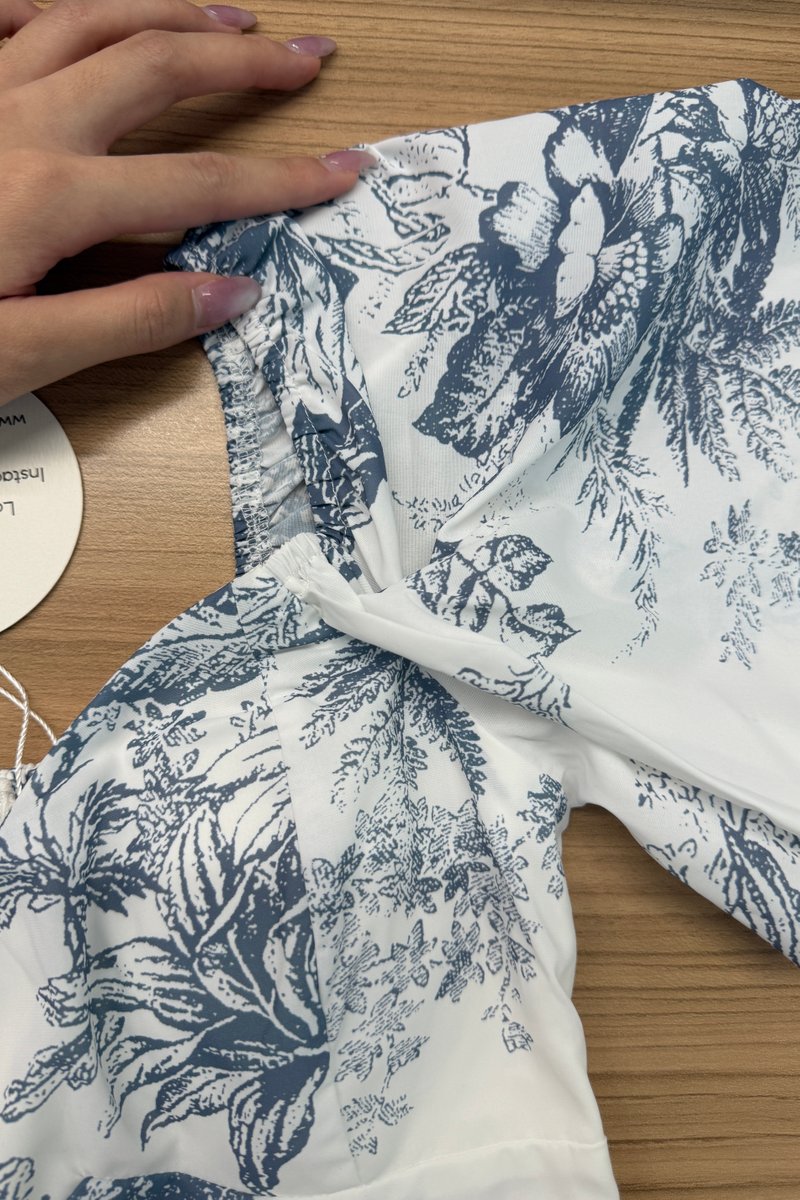 [DEFECT] Yasmin Sleeved Floral Padded Romper Dress (Yale Blue Floral, XXS)