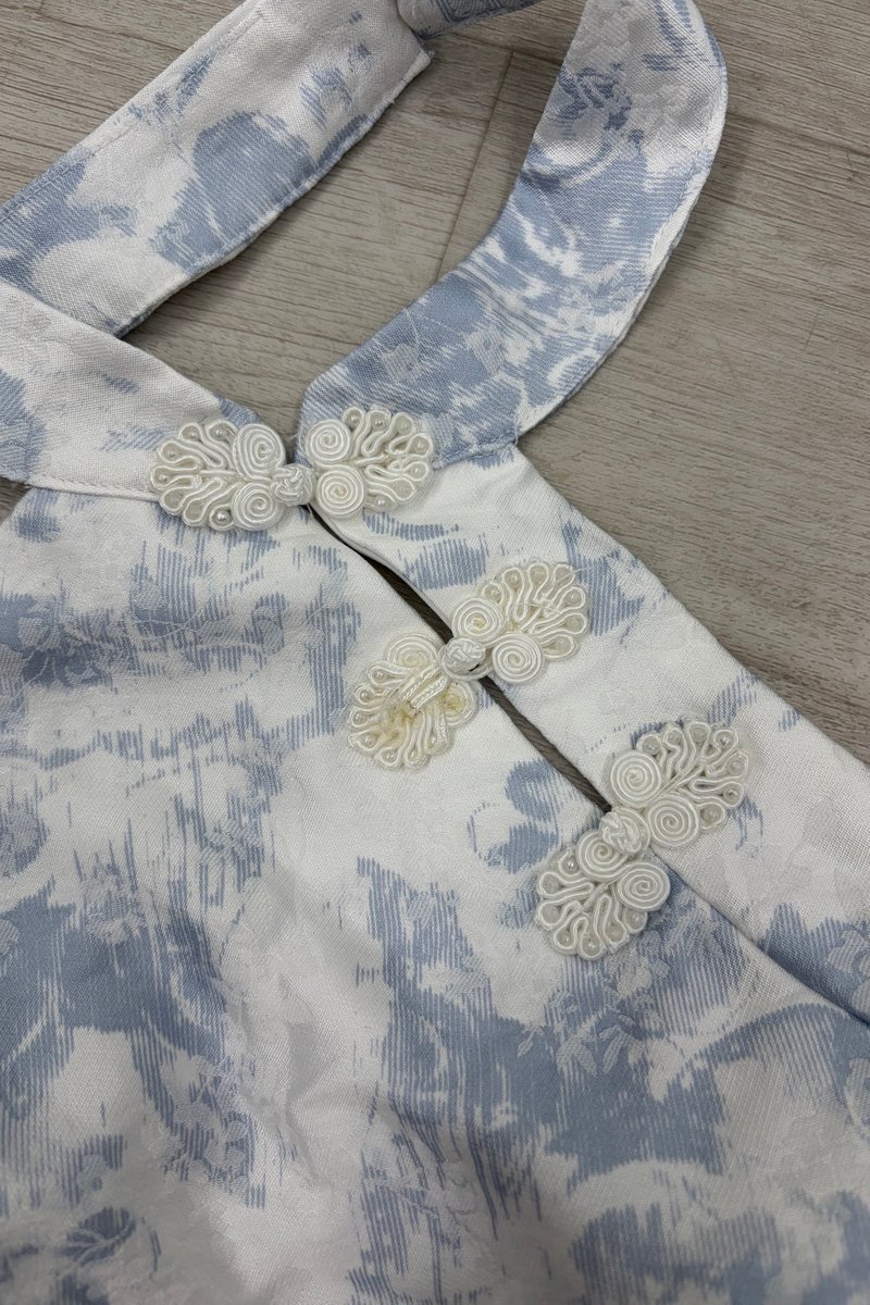 [DEFECT] Ying Floral Padded Qipao Top (Blue Floral, S)