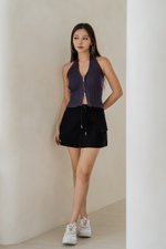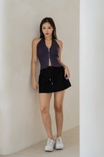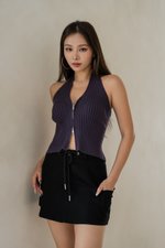 Delynn Halter Knit 2 Way Zipper Top (Gunmetal)