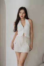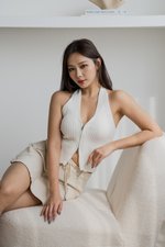 Delynn Halter Knit 2 Way Zipper Top (White)