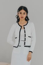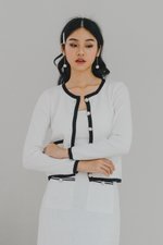 Dion Contrast Long Cardigan (White)