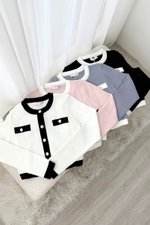 Knitted gold button contrast cardigan