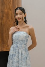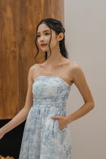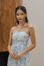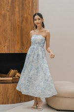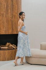 Edith Ruched Midi Dress (Ice Blue Floral)