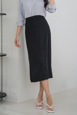 Elora Adjustable Slit Midi Skirt (Black)