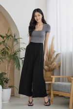 Ember Pleated Wide Leg Pants (Black)