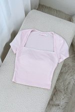 Gabby Lace Ribbed Knit Padded Top (Baby Pink)