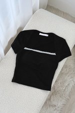 Gabby Lace Ribbed Knit Padded Top (Black)