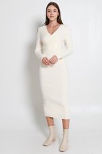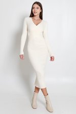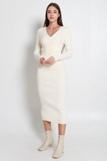 Gail Wrap Knit Midaxi Dress (Ivory)