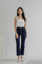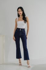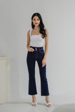 Hazel Buttons Bell Bottom Denim Jeans (Dark Wash)