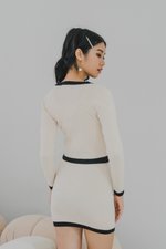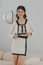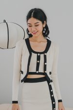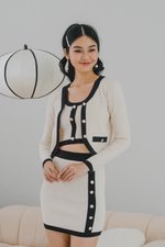 Irene Contrast Curve Hem Cardigan (Ivory)