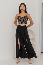 Ivania Flowy Slit Pants (Black)