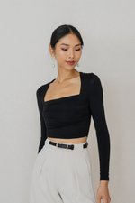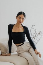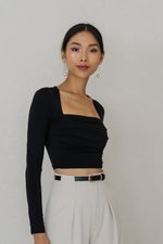 Jayla Ruched Long Sleeve Padded Top (Black)