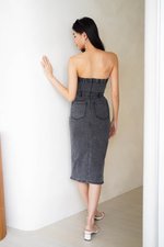 Jemma Front Slit Denim Dress V2 (Grey Wash)