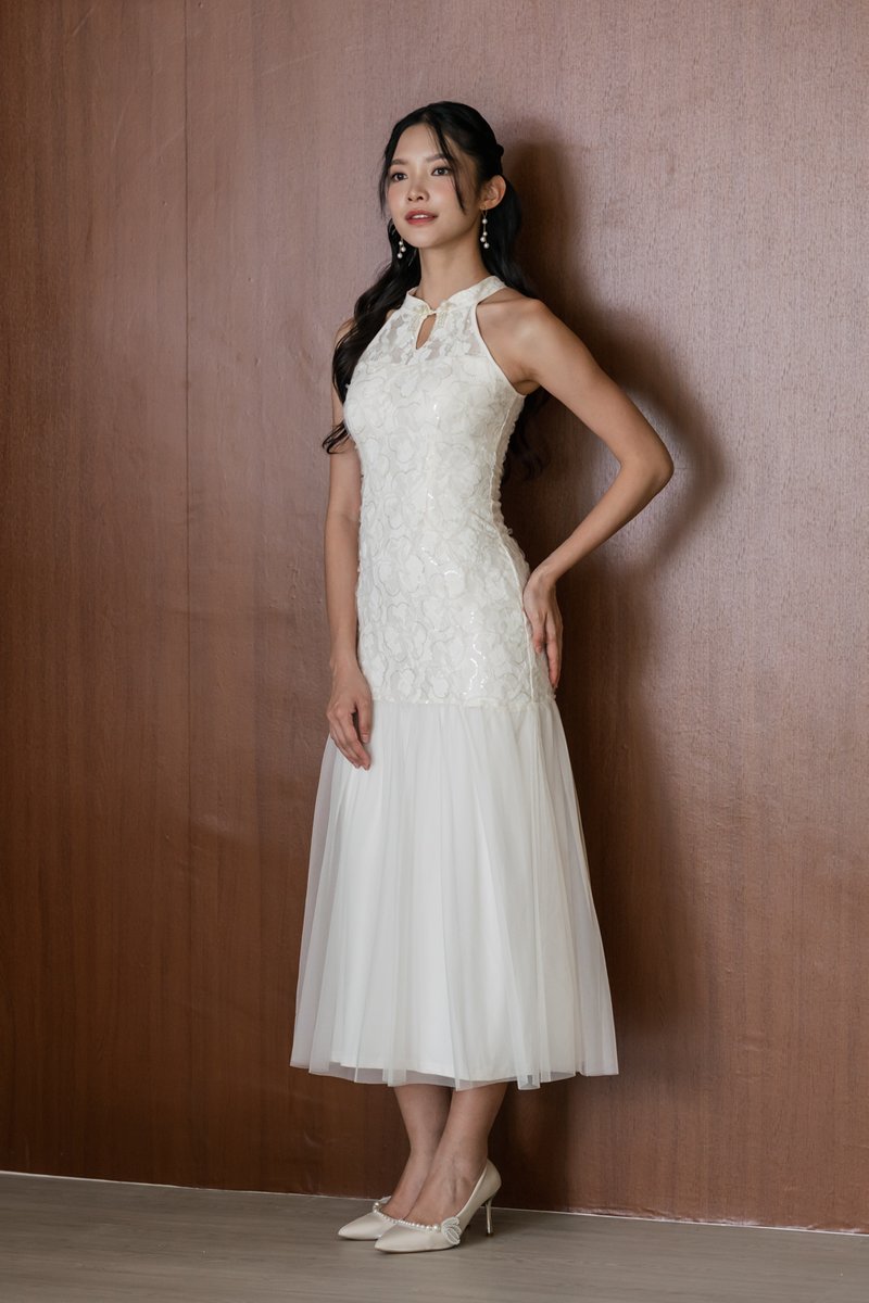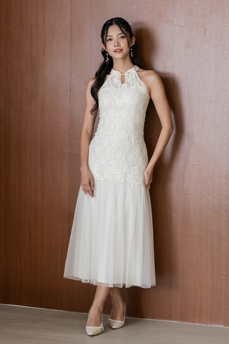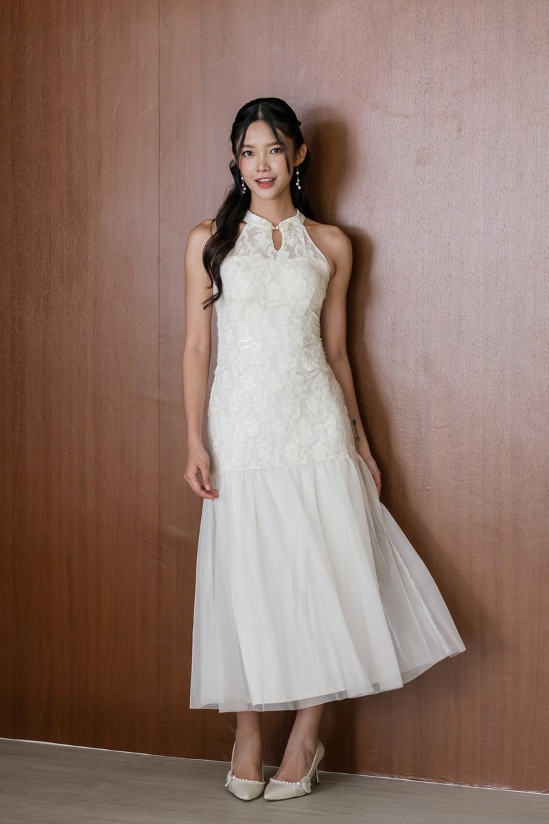 Jing Padded Sequin Maxi Qipao