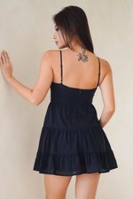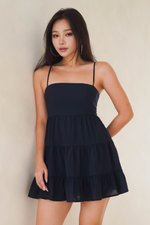 Kaitlyn Padded Tier Romper Dress (Midnight)