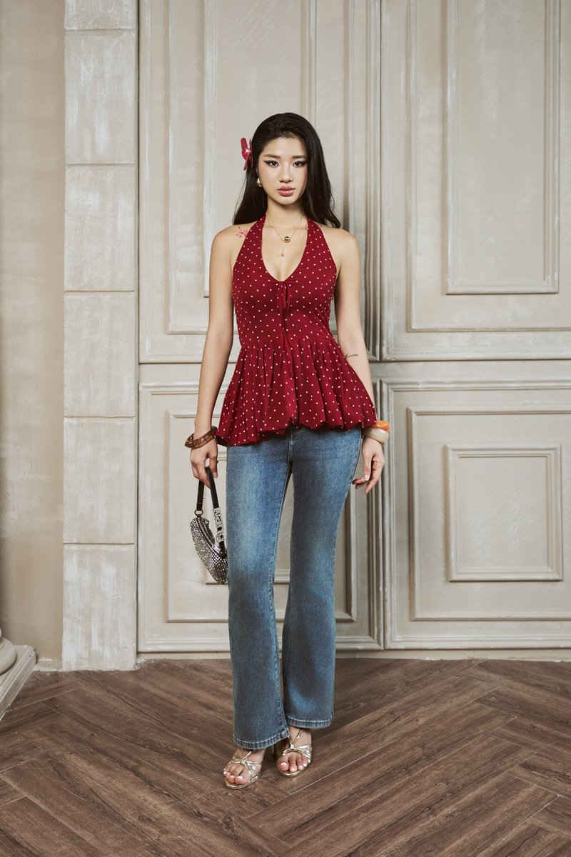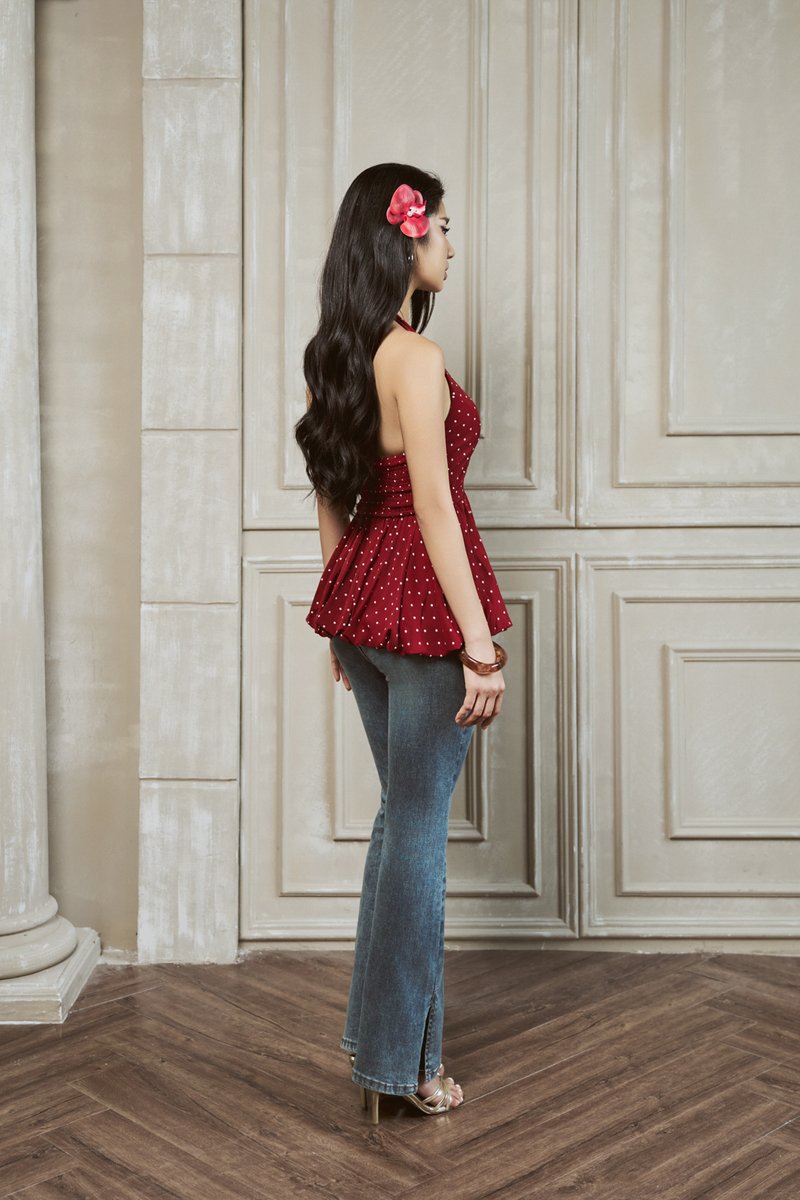 Kamila Polka Bubble Halter Padded Top (Red)