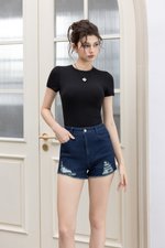 Keely Ripped Denim Shorts (Dark Vintage Wash)